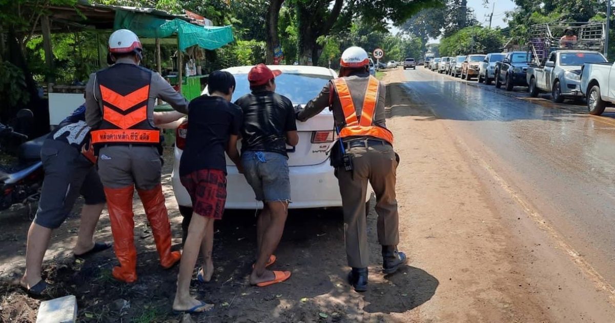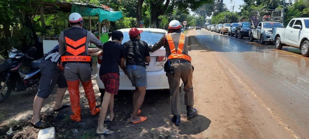 มอบหมายให้ ร.ต.ท.สาคร พัดริม รอง สว.จร.ฯ ร้อยเวร 60 พร้อมด้วยชุดสายตรวจจราจร ว.4 อำนวยการจราจรบริเวณน้ำท่วมถนนสายโกสุมพิสัย-เชียงยืน บริเวณบ้านยางใหญ่ -ยางน้อย ขณะปฎิบัติหน้าที่ พบรถเก๋งยี่ห้อฮอนด้า ทะเบียน 1 กง 2666 กรุงเทพมหานคร ของนางปิยนุช จตุพรม ที่ขับมาแล้วเครื่องยนต์ดับ เจ้าหน้าที่จราจรให้การช่วยเหลือโดยเข็นรถเข้าจอดข้างทางเพื่อความปลอดภัยในการจราจร