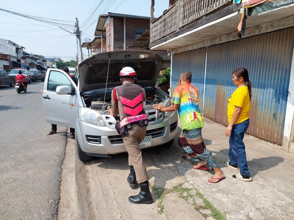 วันนี้(26 เม.ย.66) เวลา 09.30 น. โดยการอำนวยการของ พ.ต.อ.สวัสดิ์ ศรีแสนยง ผกก.สภ.โกสุมพิสัย พ.ต.ท.ชินดล งามสุทธิ รอง ผกก.ป.สภ.โกสุมพิสัย พ.ต.ต.จักรภพ กล้าณรงค์ สวป.สภ.โกสุมพิสัย สั่งการให้ ร.ต.อ.นรวัฒน์ มูลมณี รอง สว.จร.สภ.โกสุมพิสัย/ร้อยเวร60 พร้อมชุดจราจร ว.4 อำนวยการจราจร บริเวณถนนรอบตลาดสดเทศบาล ต.หัวขวาง อ.โกสุมพิสัย จ.มหาสารคาม -พบรถยนต์ของนายผดุง รอดปัน ที่อยู่ 9 ม.6 ต.วังชัย อ.น้ำพอง จ.ขอนแก่น จอดเสียอยู่บริเวณริมถนนจึงได้สอบถามพบว่าสาเกตุเกิดจากแบตเตอรี่หมดทำให้รถสตาร์ทไม่ติด จึงได้ช่วยเหลือโดยการพ่วงแบตและแนะนำให้นำรถเข้าอู่ซ่อมที่อยู่ใกล้เคียงต่อไป