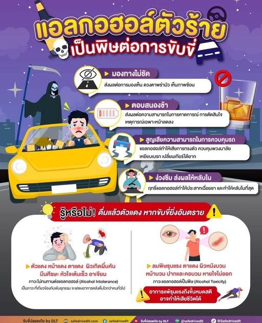 ผลกระทบที่เกิดจากการดื่ม #แอลกอฮอล์ เป็นพิษต่อการขับขี่และร่างกายอย่างไร? มาดูกันครับ