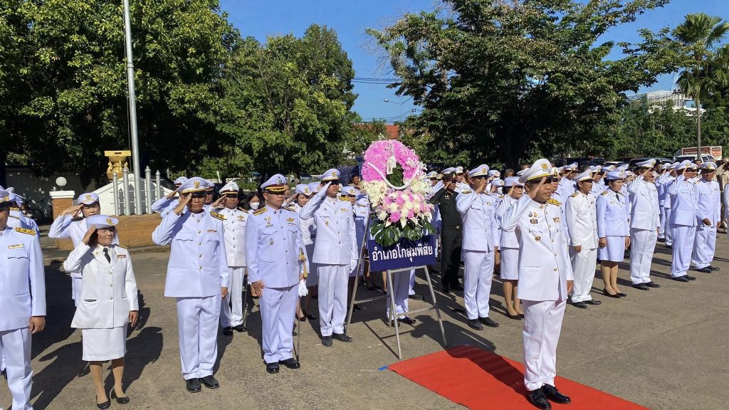 วันนี้ ( 23 ต.ค. 66 ) เวลา 08.00 น. 8 พฤศจิกายน 2566 โดย admin / ไม่มีหมวดหมู่ พ.ต.อ.สวัสดิ์ ศรีแสนยง ผกก.สภ.โกสุมพิสัย พร้อมด้วยข้าราชการตำรวจ สภ.โกสุมพิสัย เข้าร่วมพิธีวางพวงมาลา น้อมรำลึกเนื่องในวันคล้ายวันสวรรคตพระบาทสมเด็จพระจุลจอมเกล้าเจ้าอยู่หัว 23 ตุลาคม 2566 โดยมี นายฉลอง พึ่งโคกสูง นายอำเภอโกสุมพิสัย เป็นประธานในพิธี ณ บริเวณพระบรมราชานุสาวรีย์รัชกาลที่ 5 ด้านหน้าที่ว่าการอำเภอโกสุมพิสัย