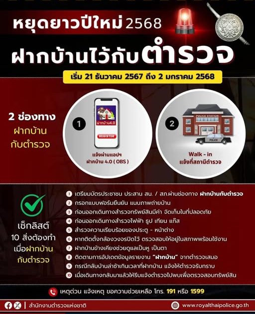 ปีใหม่นี้หยุดยาว ฝากบ้านไว้ให้ตำรวจช่วยดูแล