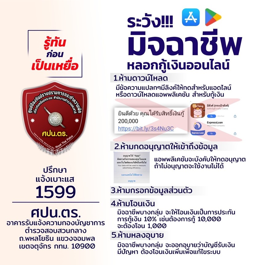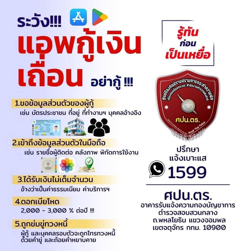 #ศูนย์ป้องกันปราบปรามการกระทำผิดเกี่ยวกับหนี้นอกระบบ#สํานักงานตํารวจแห่งชาติ เตือนประชาชนระวังแอพกู้