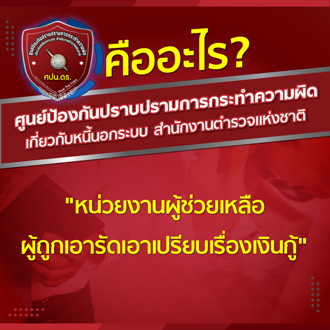 #ศูนย์ป้องกันปราบปรามการกระทำความผิดเกี่ยวกับหนี้นอกระบบ (ศปน.ตร.) #สํานักงานตํารวจแห่งชาติ คือ̷