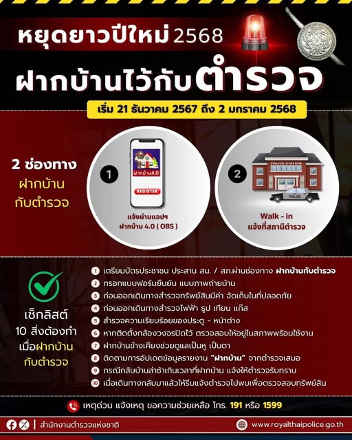 เริ่มแล้ว #ฝากบ้านกับตำรวจ ปีใหม่นี้หยุดยาว ฝากบ้านไว้ให้ตำรวจช่วยดูแล . 2 ช่องทางฝากบ้านกับตำรวจ 1.