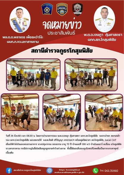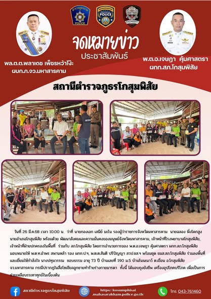 วันที่ 26 มี.ค.68 เวลา 15.00 น. พ.ต.อ.เจษฎา คุ้มศาตรา ผกก.สภ.โกสุมพิสัย มอบหมายให้ พ.ต.ท.อำพร สพานหล