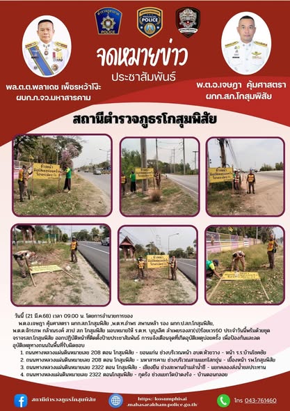 วันนี้ (21 มี.ค.68) เวลา 09.00 น. โดยการอำนวยการของ พ.ต.อ.เจษฎา คุ้มศาสตรา ผกก.สภ.โกสุมพิสัย พ.ต.ท.อ