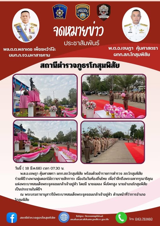 นนี้ ( 18 มี.ค.68) เวลา 07.30 น.พ.ต.อ.เจษฎา คุ้มศาสตรา ผกก.สภ.โกสุมพิสัยพร้อมด้วยข้าราชการตำรวจ สภ.โ