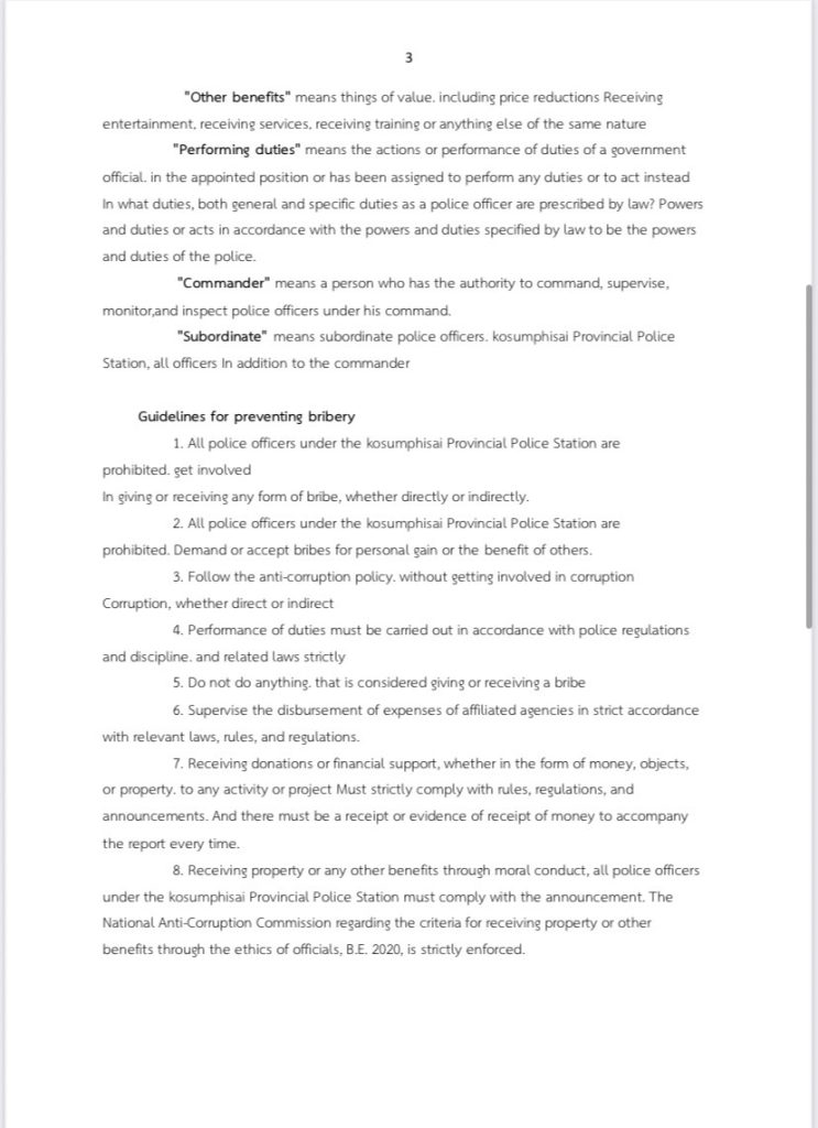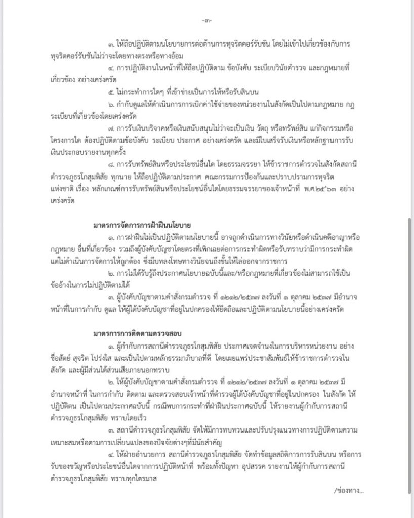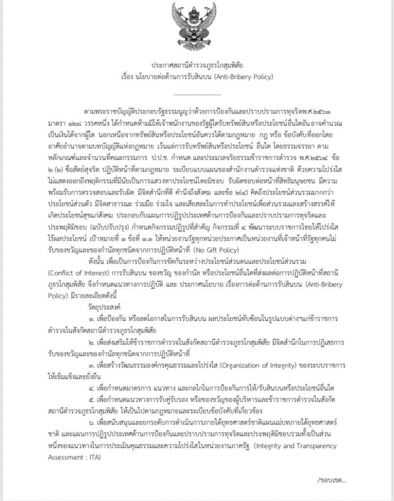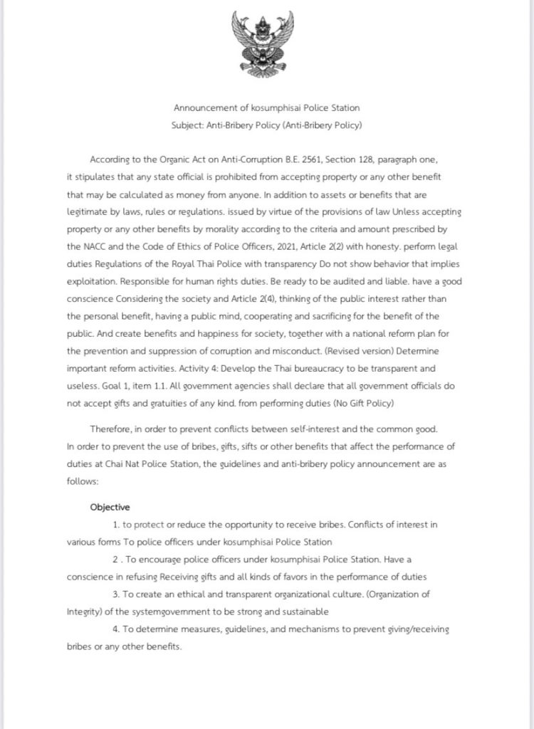 O18 ประกาศนโยบายต่อต้านการรับสินบน (Anti-Bribery Policy)
