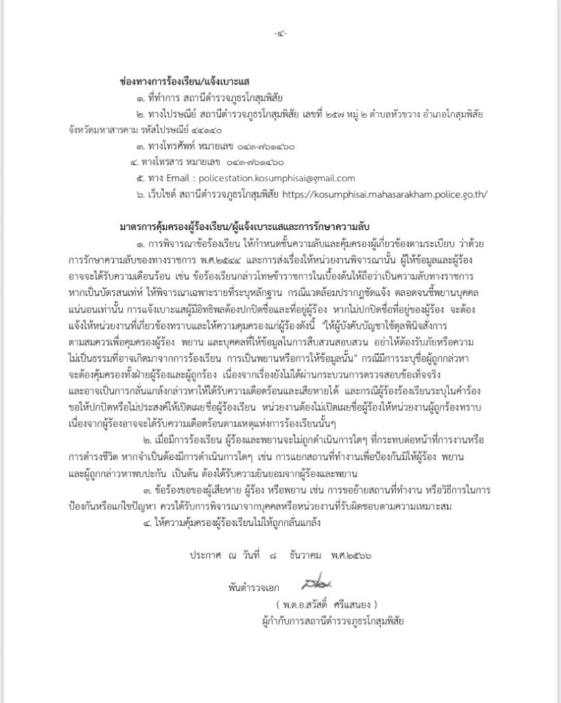 ประกาศสถานีตำรวจภูธรโกสุมพิสัย